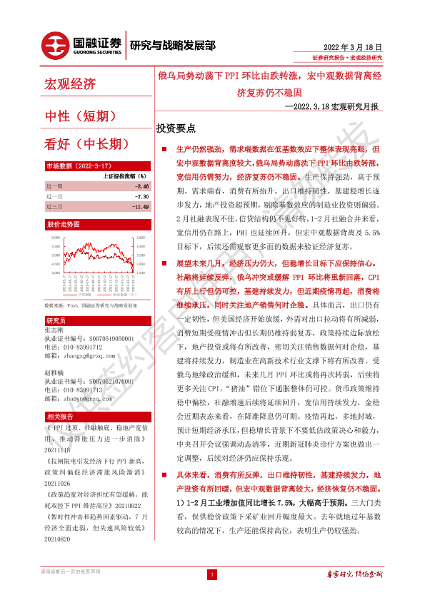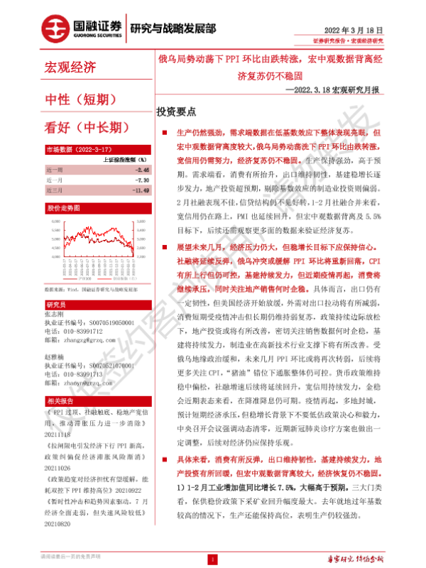 【国融证券】【20220318】宏观经济月报:俄乌局势动荡下PPI环比由跌转涨,宏中观数据背离经济复苏仍不稳固-30页