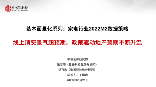 【中信证券】【20220321】家电行业基本面量化系列:家电行业2022M2数据策略,线上消费景气超预期,政策驱动地产预期不断升温-22页
