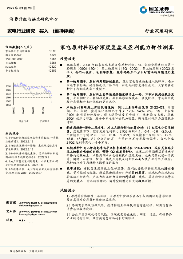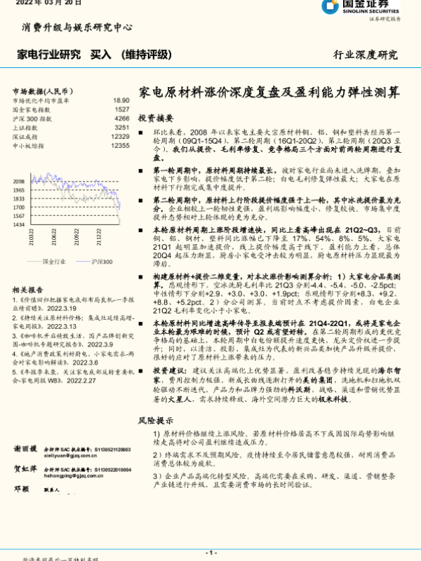 【国金证券】【20220320】家电行业:家电原材料涨价深度复盘及盈利能力弹性测算-30页