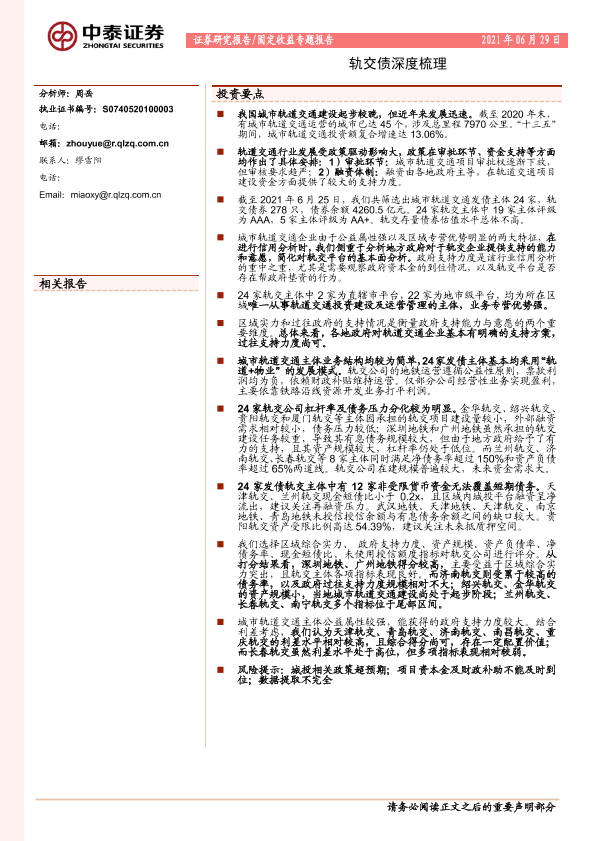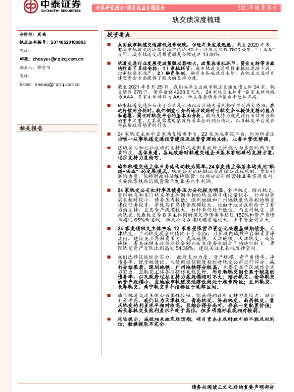 【中泰证券】【20210629】轨交债深度梳理-27页
