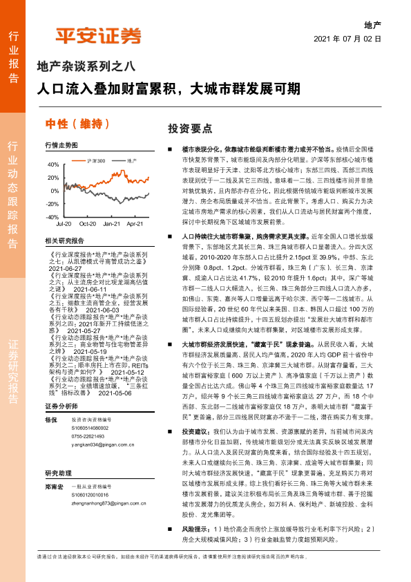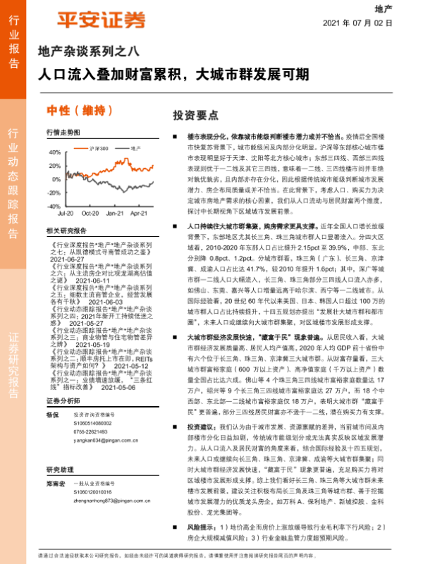 【平安证券】【20210702】地产杂谈系列之八:人口流入叠加财富累积,大城市群发展可期-13页