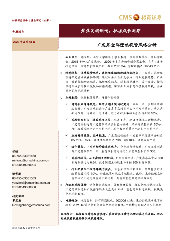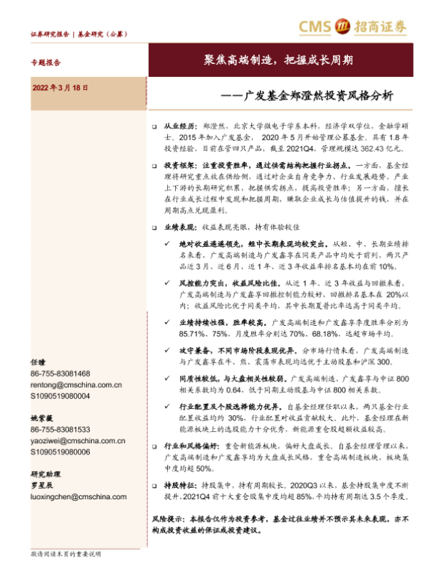 【海通证券】【20220318】广发基金郑澄然投资风格分析:聚焦高端制造,把握成长周期-18页