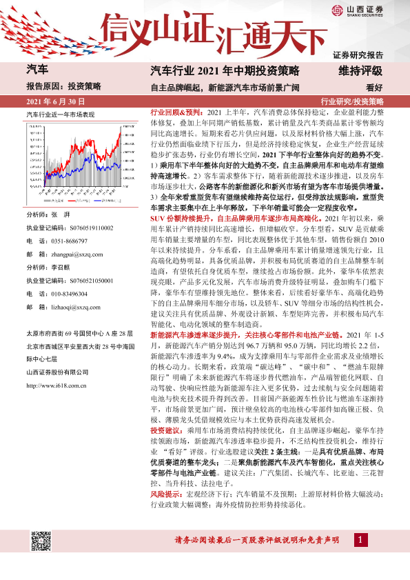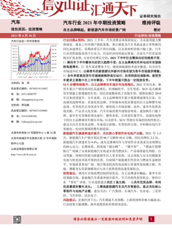 【山西证券】【20210630】汽车行业2021年中期投资策略:自主品牌崛起,新能源汽车市场前景广阔-37页
