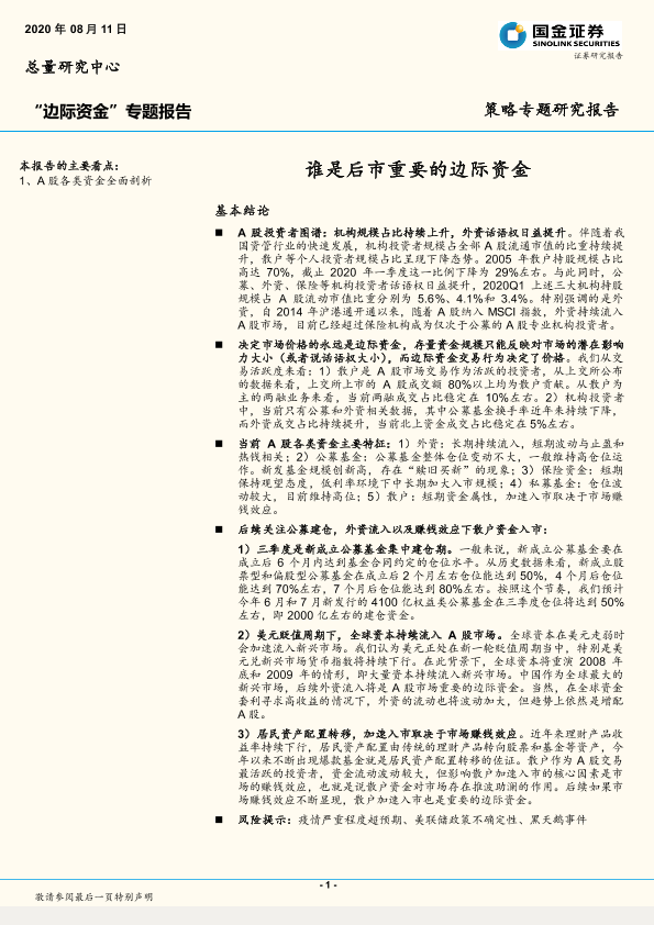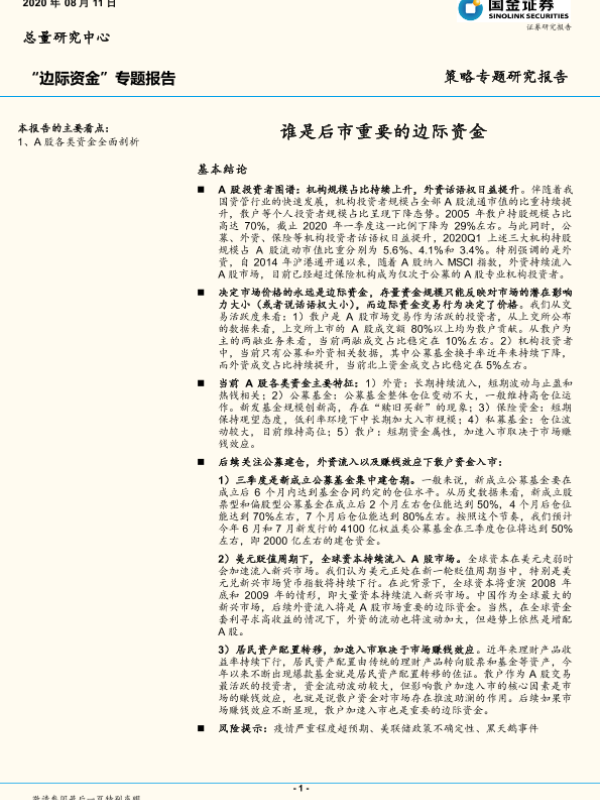 【国金证券】【20200811】“边际资金”专题报告:谁是后市重要的边际资金-16页