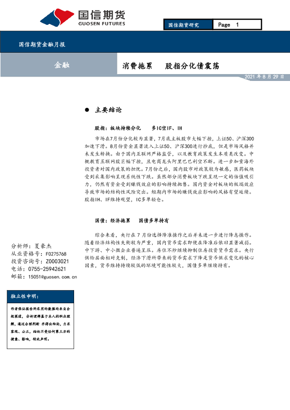 【国信期货】【20210829】消费拖累_股指分化债震荡-14页