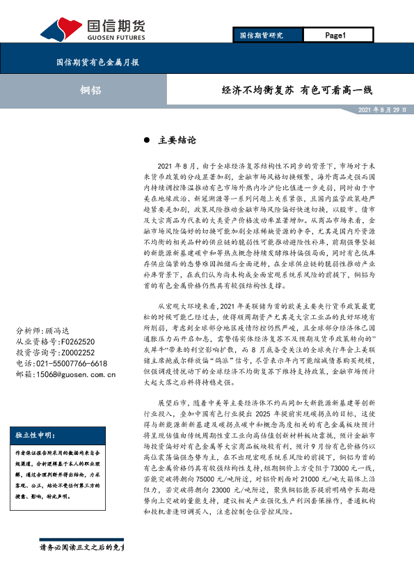 【国信期货】【20210829】经济不均衡复苏_有色可看高一线-20页