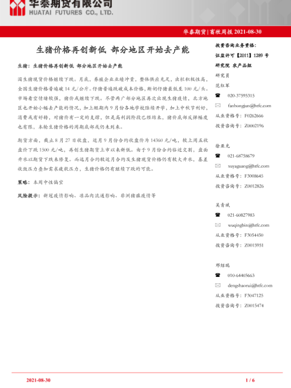 【华泰期货】【20210829】畜牧周报_生猪价格再创新低_部分地区开始去产能-6页