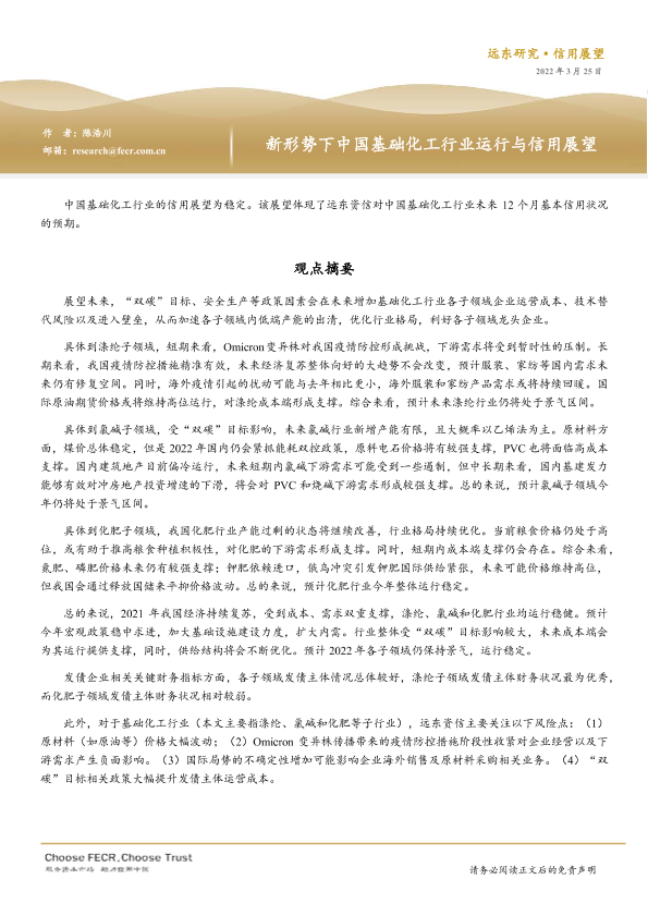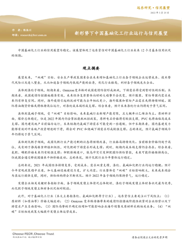 【远东资信】【20220325】新形势下中国基础化工行业运行与信用展望-37页