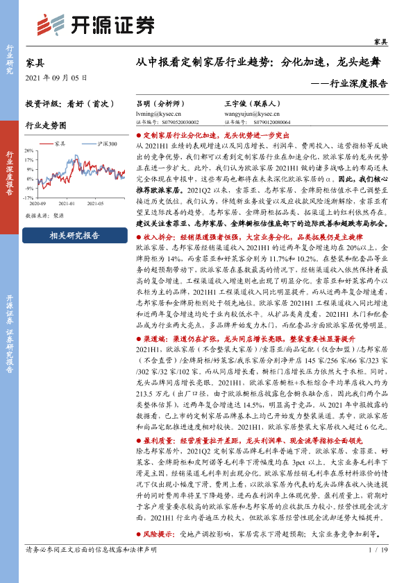 【开源证券】【20210905】家具行业深度报告:从中报看定制家居行业趋势:分化加速,龙头起舞-19页
