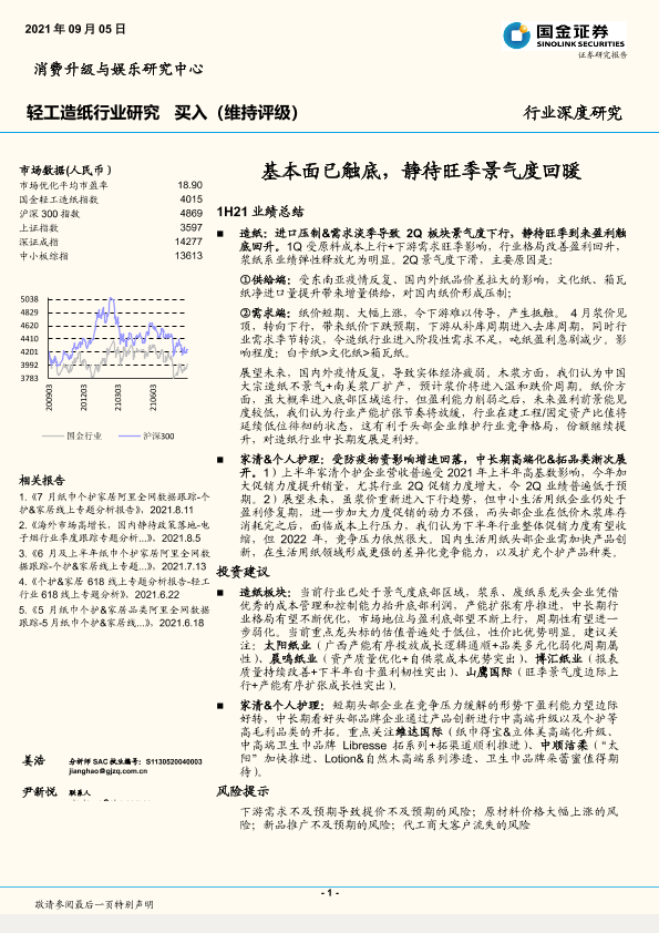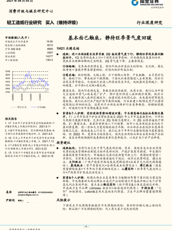 【国金证券】【20210905】轻工造纸行业深度研究:基本面已触底,静待旺季景气度回暖-18页