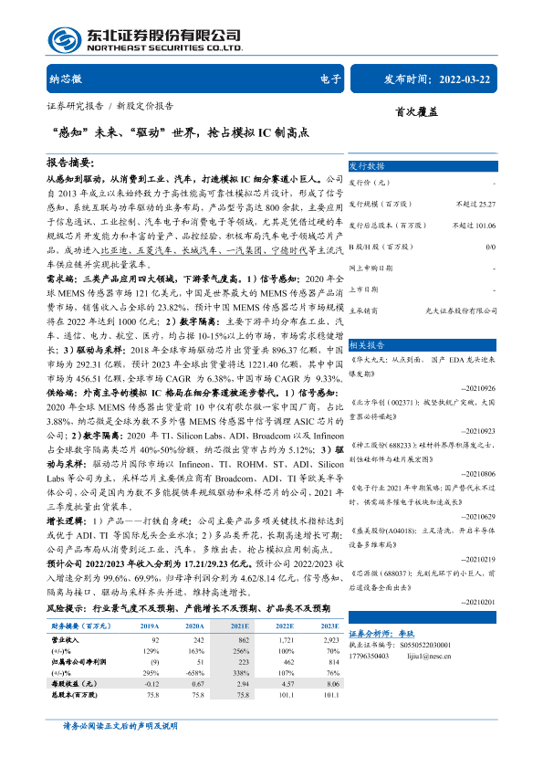 【东北证券】【20220322】新股定价报告:纳芯微,“感知”未来、“驱动”世界,抢占模拟IC制高点-42页