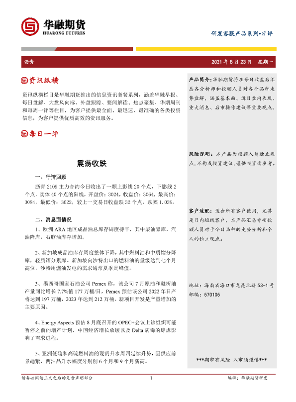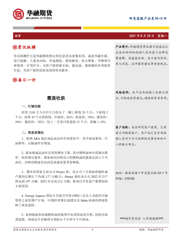 【华融期货】【20210823】20210823-华融期货-沥青日评_震荡收跌-2页