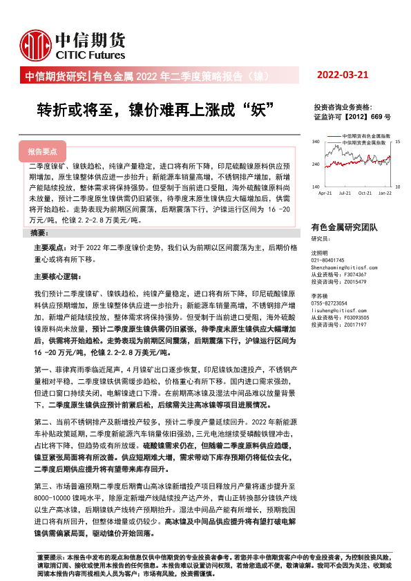 【中信期货】【20220321】有色金属2022年二季度策略报告(镍):转折或将至,镍价难再上涨成“妖”-17页