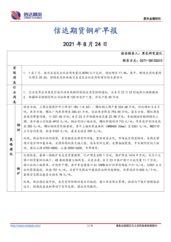 【信达期货】【20210824】信达期货钢矿早报-9页