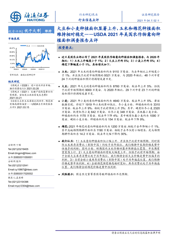 【海通证券】【20210402】农业行业信息点评:USDA 2021年美国农作物意向种植面积调查报告点评-6页