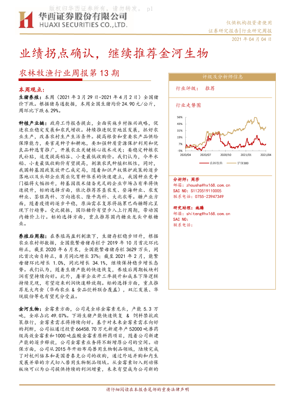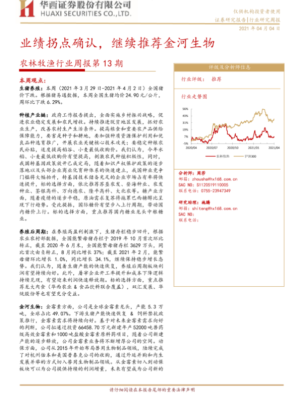 【华西证券】【20210404】20210404-华西证券-农林牧渔行业周报第13期:业绩拐点确认,继续推荐金河生物-23页