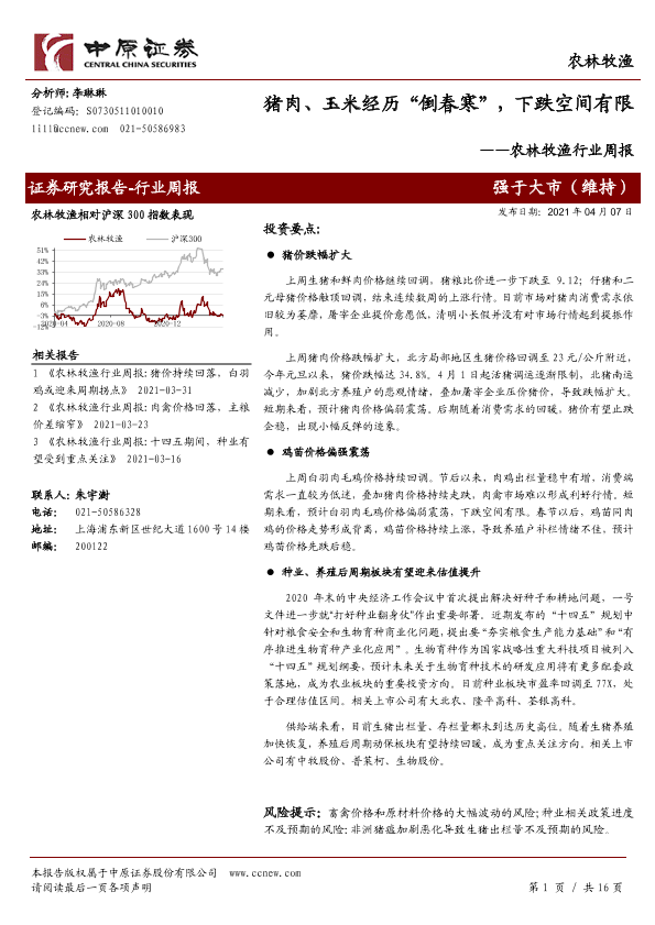 【中原证券】【20210407】农林牧渔行业周报:猪肉、玉米经历“倒春寒”,下跌空间有限-16页
