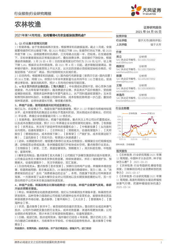 【天风证券】【20210405】20210405-天风证券-农林牧渔2021年第14周周报:如何看待4月农业板块投资机会?-15页