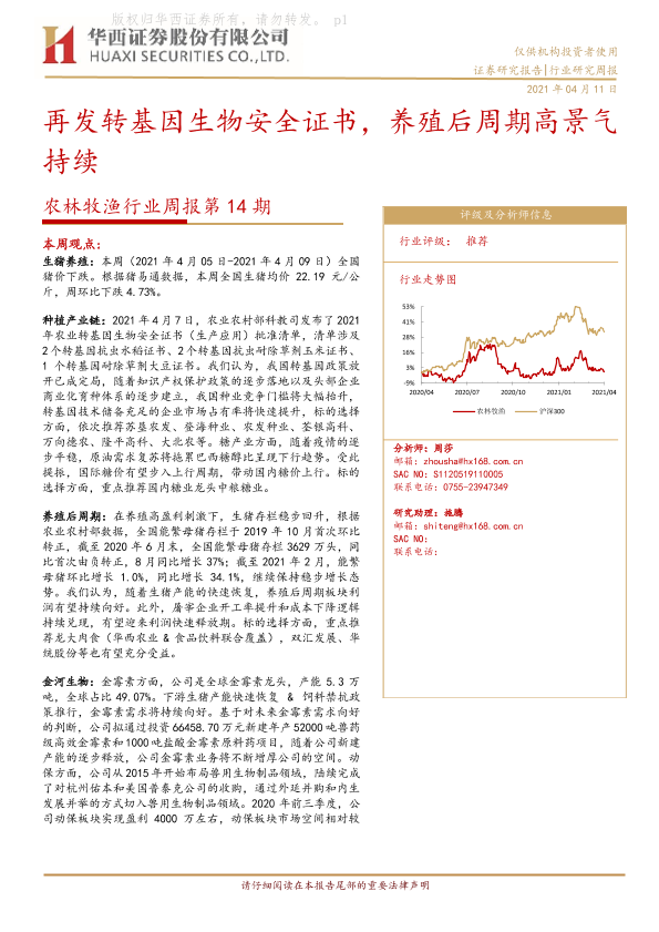 【华西证券】【20210411】农林牧渔行业周报第14期:再发转基因生物安全证书,养殖后周期高景气持续-23页