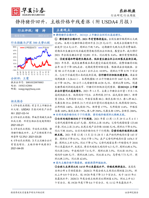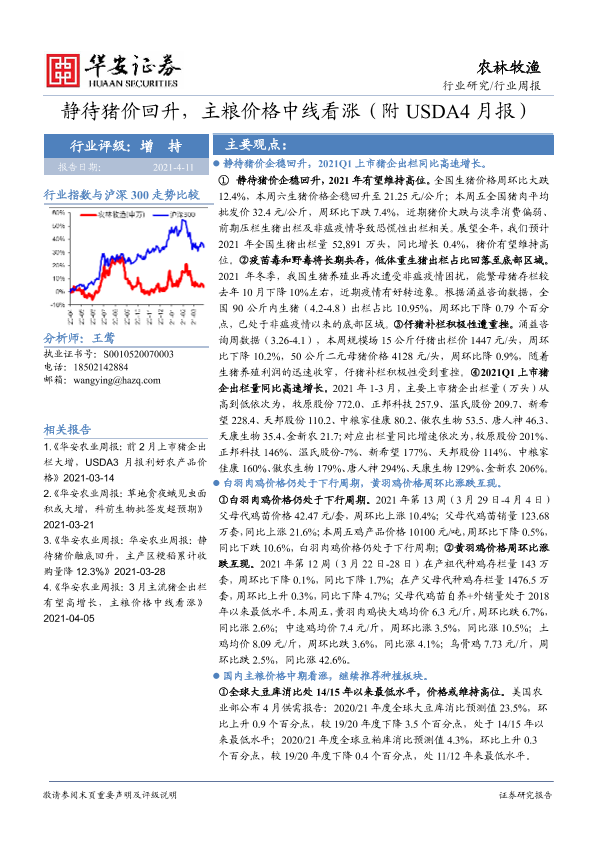 【华安证券】【20210411】20210411-华安证券-农林牧渔行业周报:静待猪价回升,主粮价格中线看涨(附USDA4月报)-42页