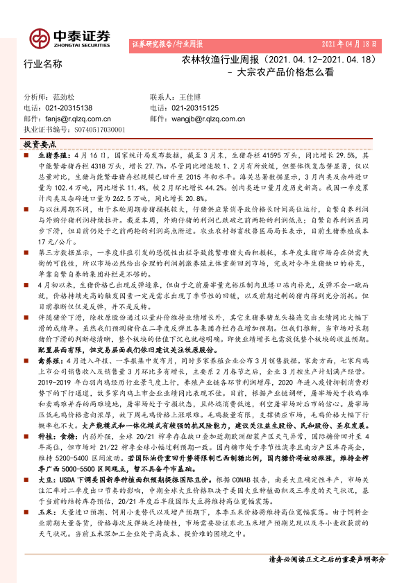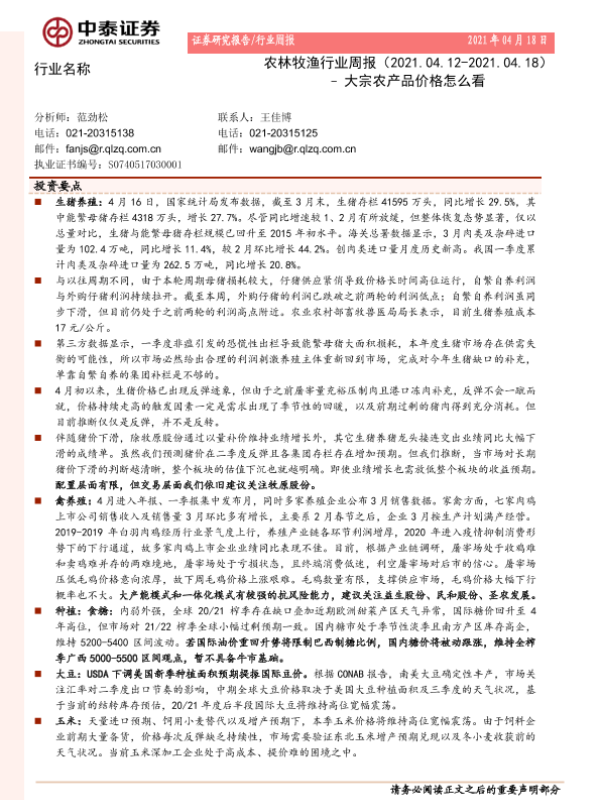 【中泰证券】【20210418】农林牧渔行业周报:大宗农产品价格怎么看-15页