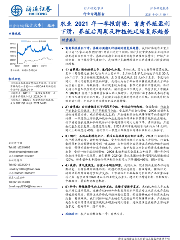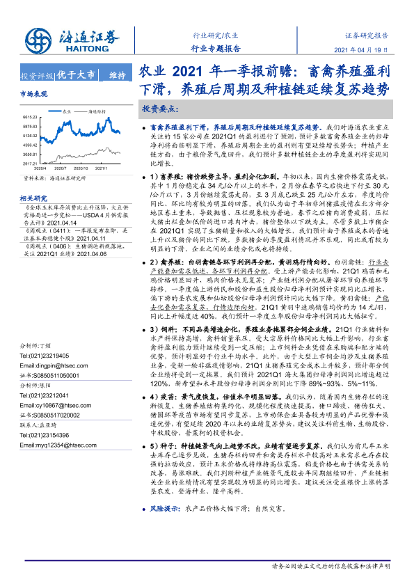 【海通证券】【20210419】农业2021年一季报前瞻:畜禽养殖盈利下滑,养殖后周期及种植链延续复苏趋势-14页