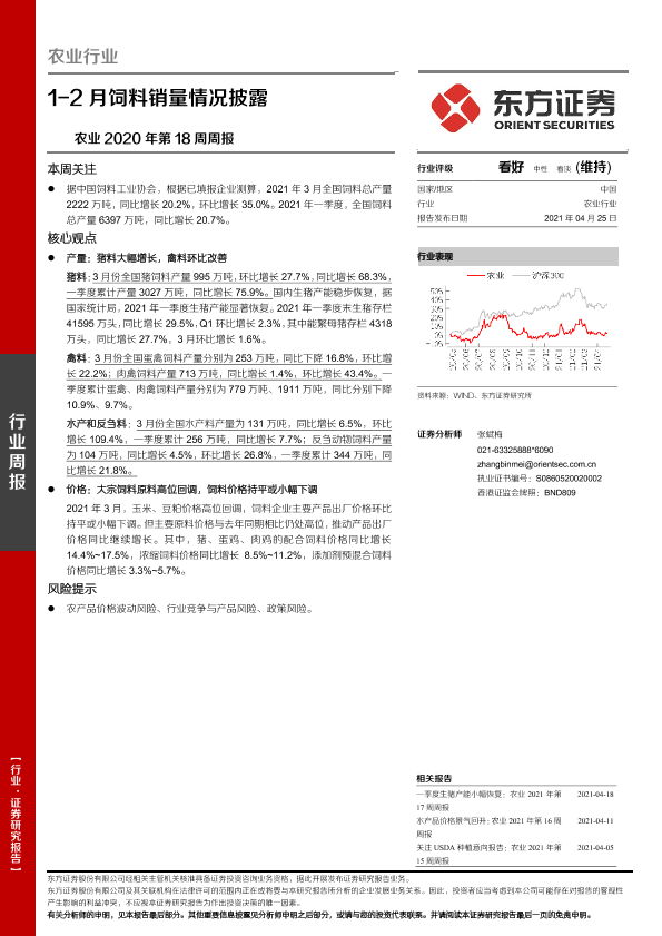 【东方证券】【20210425】农业2020年第18周周报:1-2月饲料销量情况披露-9页