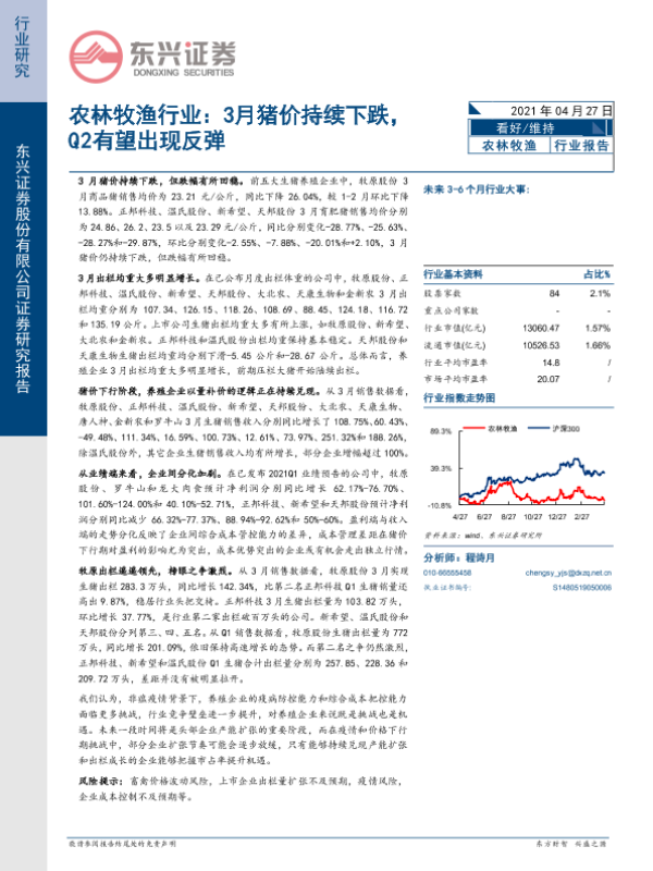 【东兴证券】【20210427】20210427-东兴证券-农林牧渔行业报告:3月猪价持续下跌,Q2有望出现反弹-12页