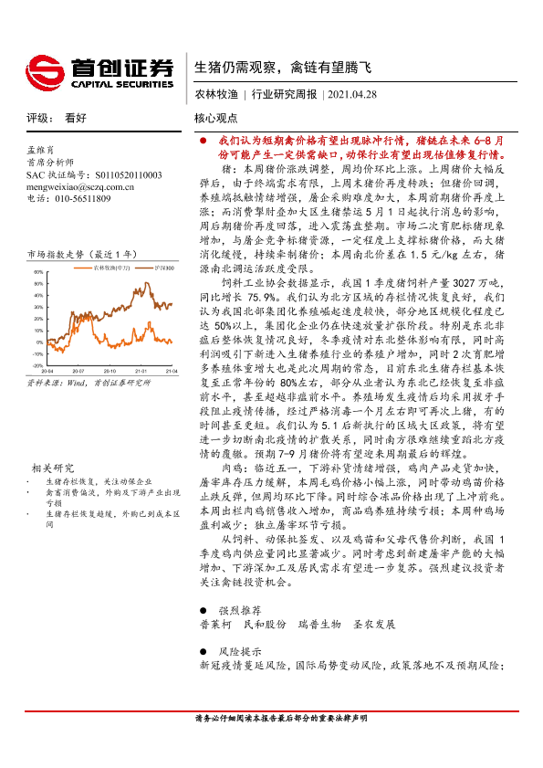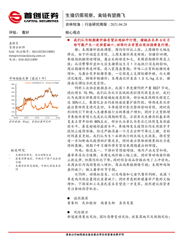 【首创证券】【20210428】20210428-首创证券-农林牧渔行业研究周报:生猪仍需观察,禽链有望腾飞-22页