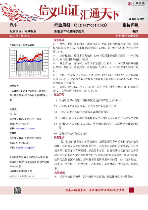 【山西证券】【20210930】20210930-山西证券-汽车行业周报:新能源车销量持续提升-14页