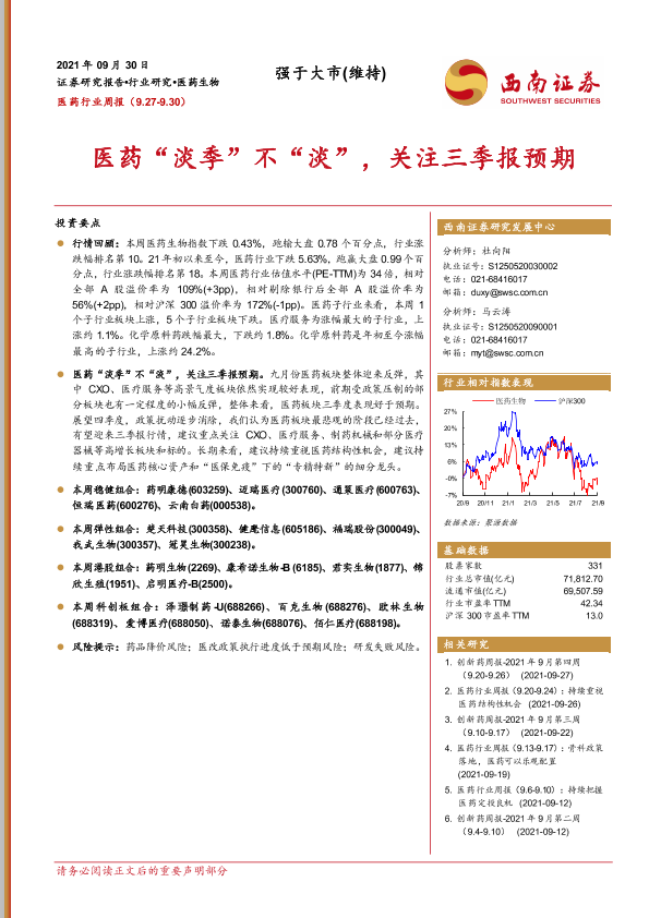 【西南证券】【20210930】医药行业周报:医药“淡季”不“淡”,关注三季报预期-36页
