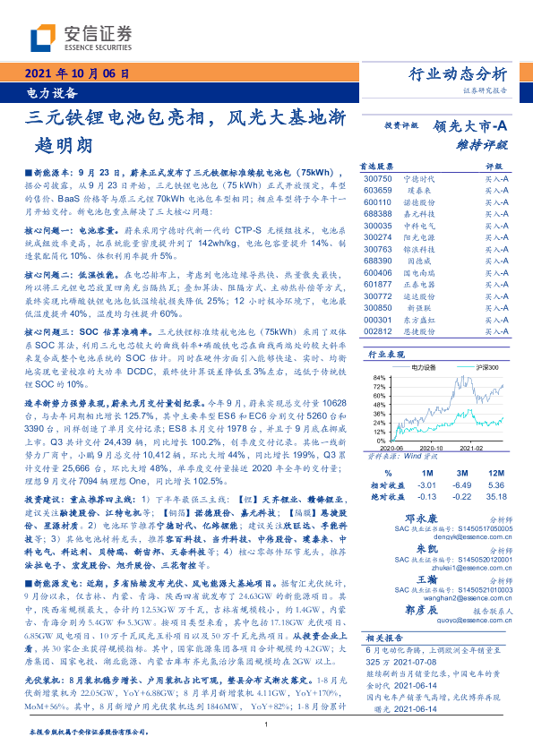 【安信证券】【20211006】电力设备行业动态分析:三元铁锂电池包亮相,风光大基地渐趋明朗-26页