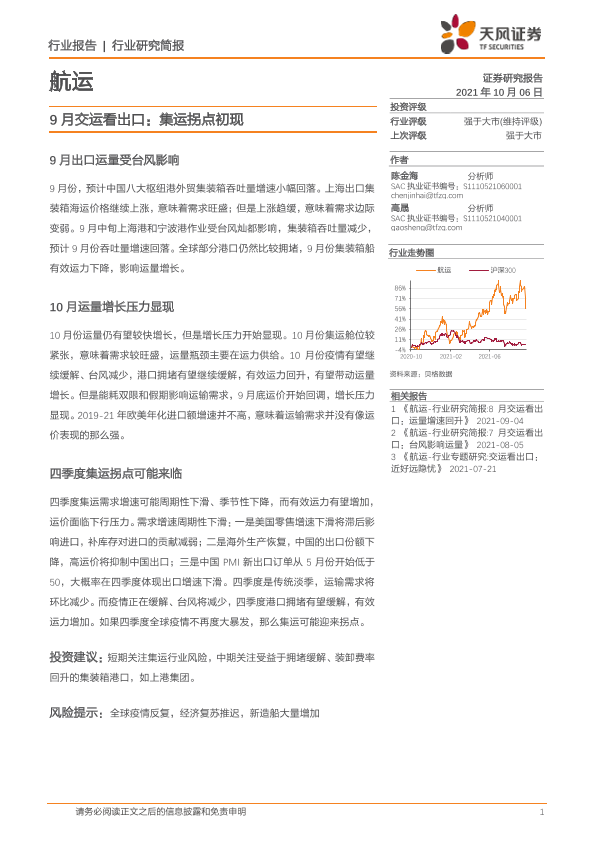 【天风证券】【20211006】9月交运看出口:集运拐点初现-13页