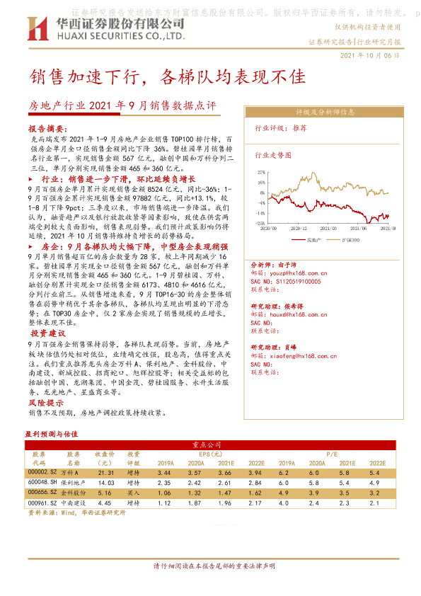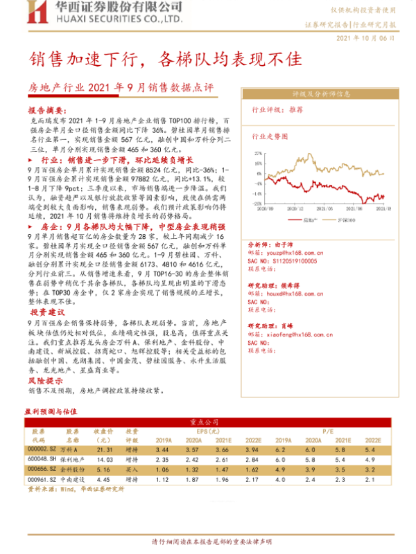 【华西证券】【20211006】房地产行业2021年9月销售数据点评:销售加速下行,各梯队均表现不佳-10页