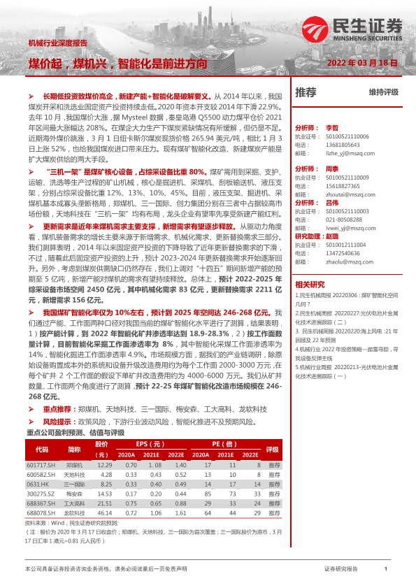 【民生证券】【20220318】机械行业深度报告:煤价起,煤机兴,智能化是前进方向-35页