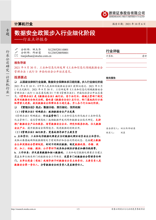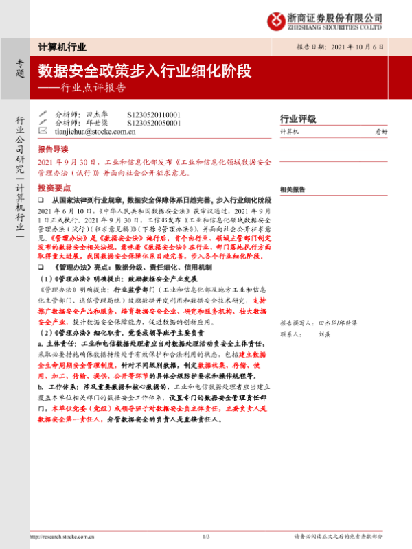 【浙商证券】【20211006】计算机行业点评报告:数据安全政策步入行业细化阶段-3页