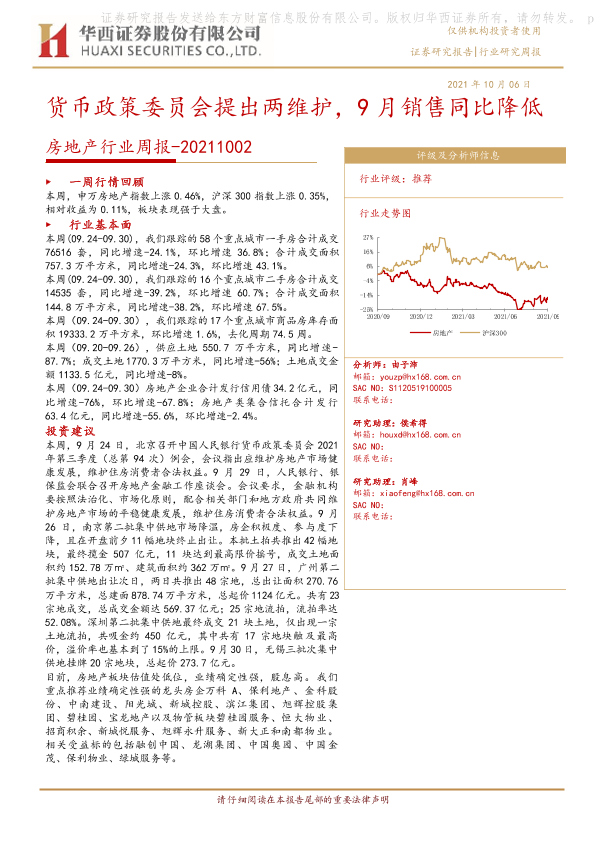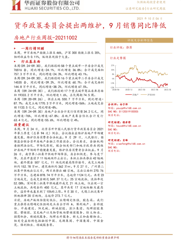 【华西证券】【20211006】房地产行业周报:货币政策委员会提出两维护,9月销售同比降低-26页