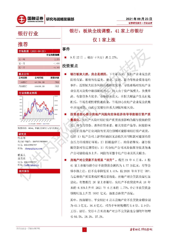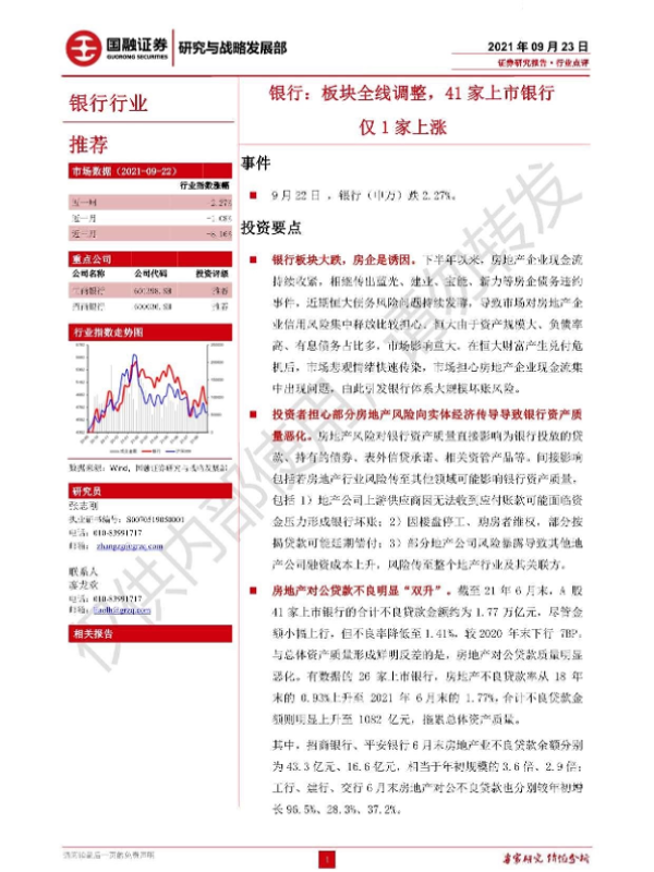 【国融证券】【20210923】银行:板块全线调整,41家上市银行仅1家上涨-3页