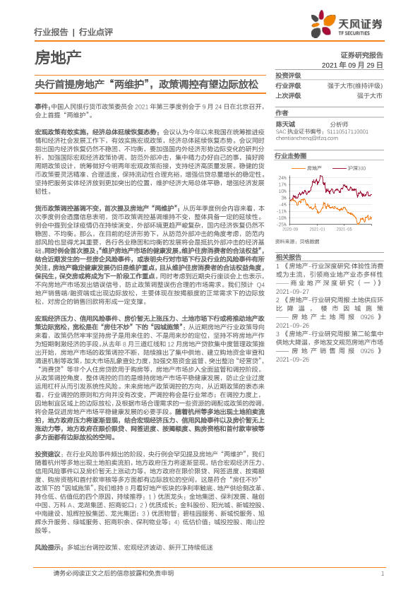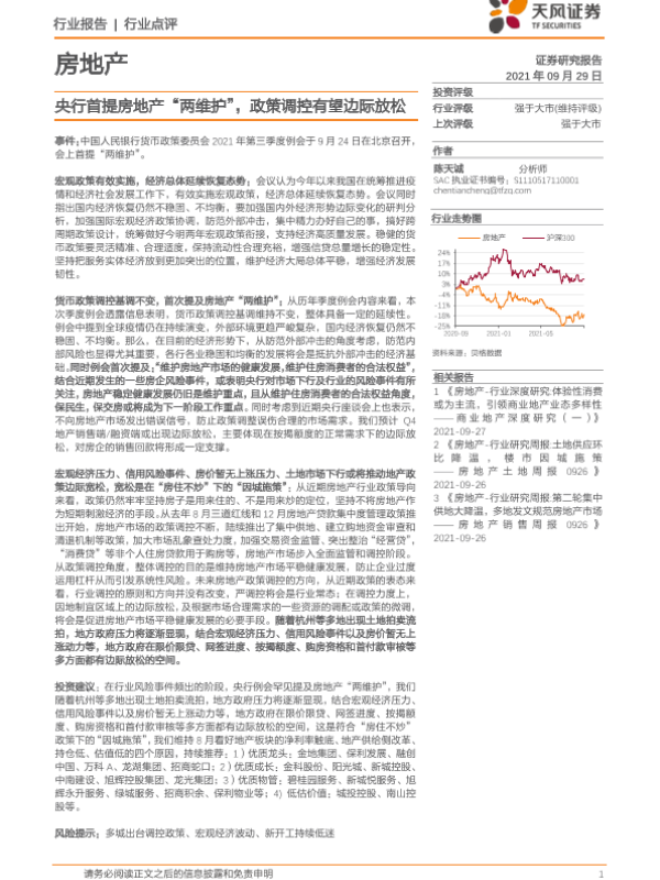 【天风证券】【20210929】房地产行业点评:央行首提房地产“两维护”,政策调控有望边际放松-9页