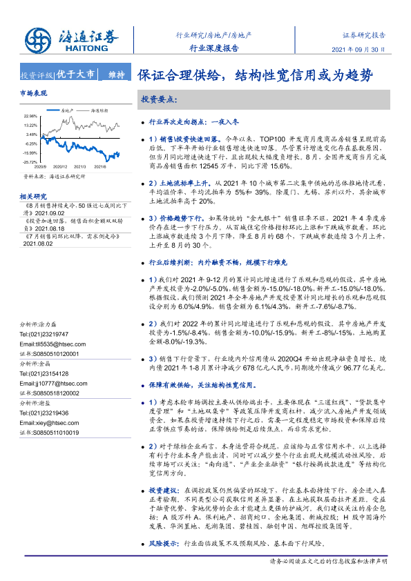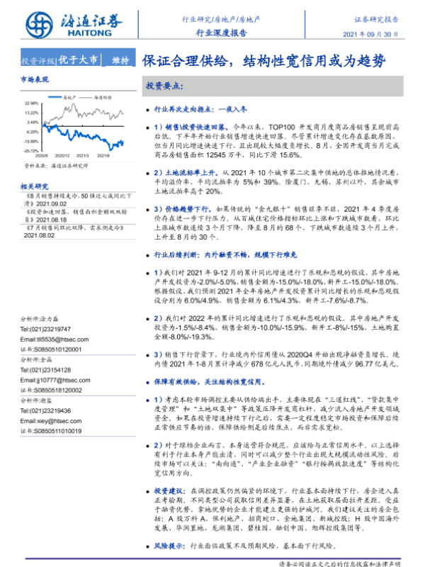 【海通证券】【20210930】20210930-海通证券-房地产行业深度报告:保证合理供给,结构性宽信用或为趋势-25页