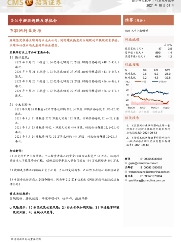 【海通证券】【20211001】互联网行业周报:关注中概股超跌反弹机会-9页