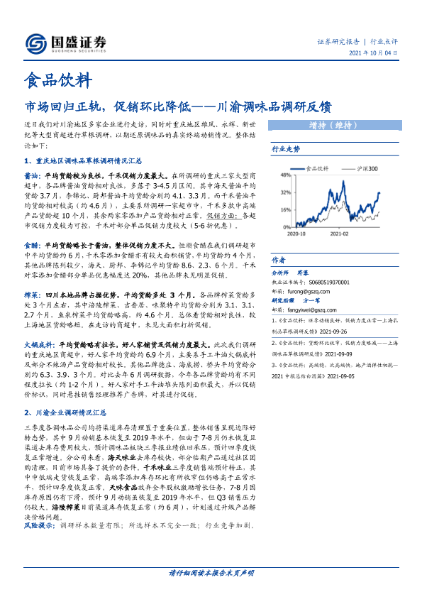 【国盛证券】【20211004】食品饮料:川渝调味品调研反馈:市场回归正轨,促销环比降低-8页