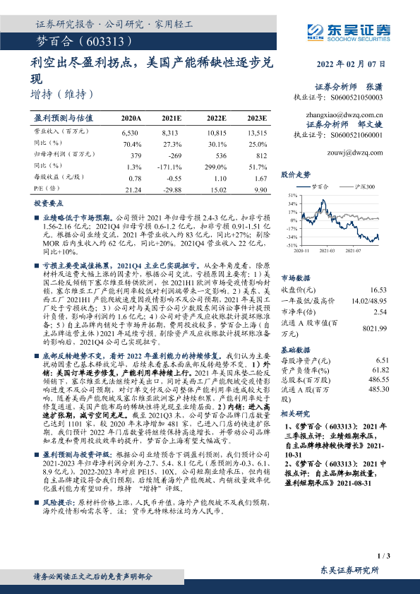【东吴证券】【20220207】梦百合-603313.SH-利空出尽盈利拐点_美国产能稀缺性逐步兑现-3页