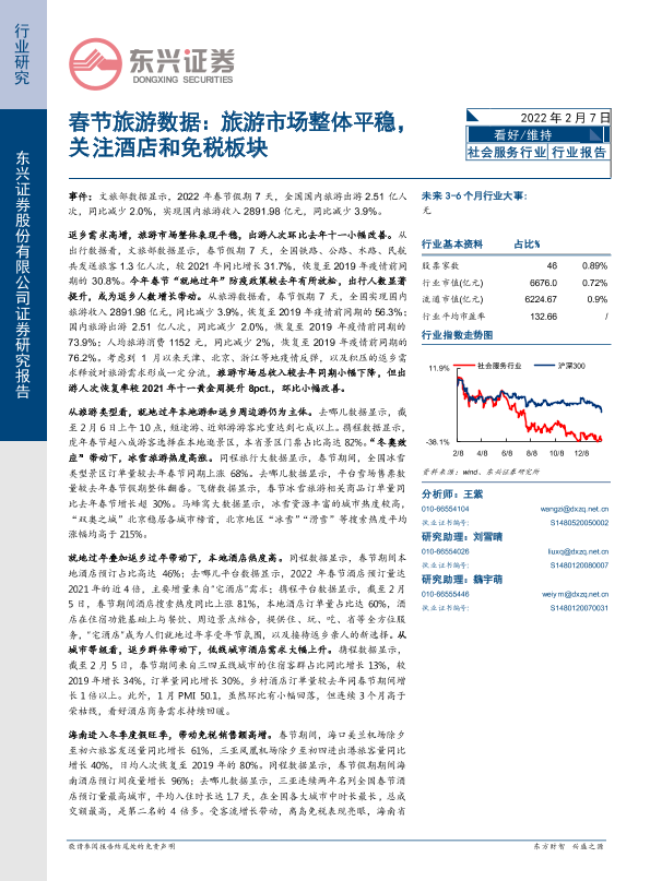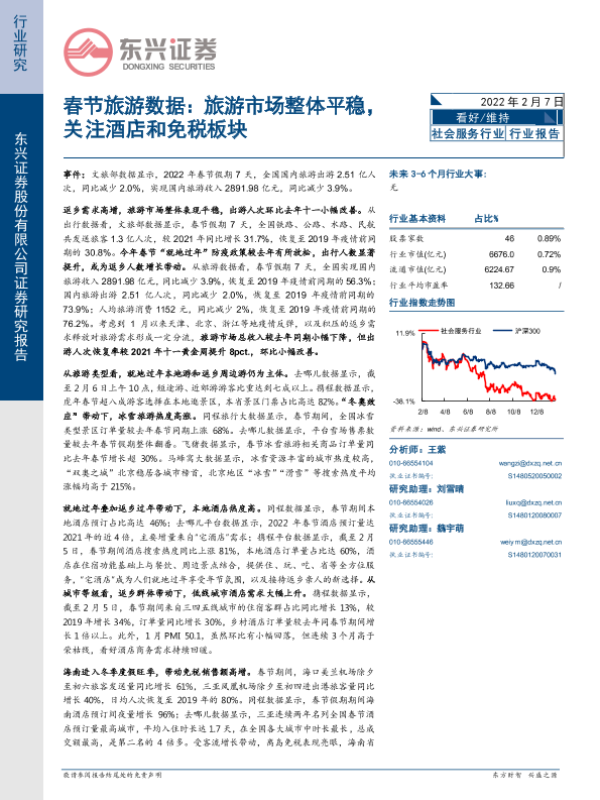 【东兴证券】【20220207】春节旅游数据:旅游市场整体平稳,关注酒店和免税板块-5页