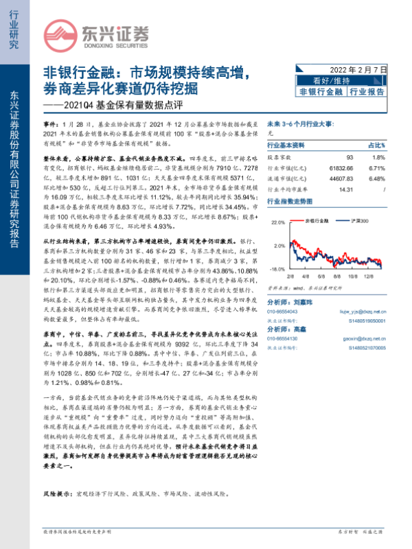 【东兴证券】【20220207】2021Q4基金保有量数据点评_非银行金融_市场规模持续高增_券商差异化赛道仍待挖掘-7页