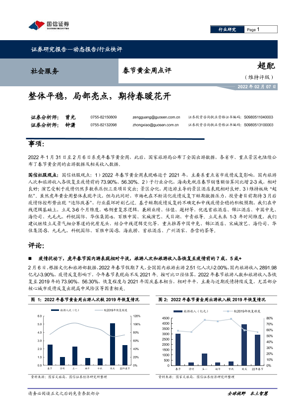【国信证券】【20220207】社会服务_春节黄金周点评-整体平稳_局部亮点_期待春暖花开-7页