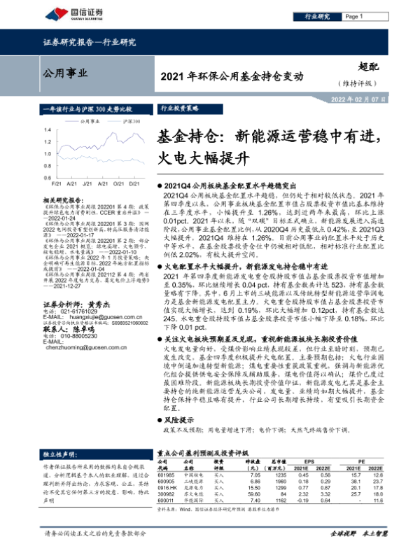 【国信证券】【20220207】2021年环保公用基金持仓变动 基金持仓_新能源运营稳中有进_火电大幅提升-10页