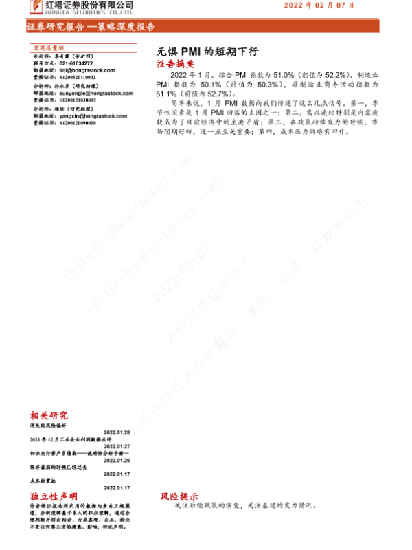【红塔证券】【20220207】无惧PMI的短期下行-11页