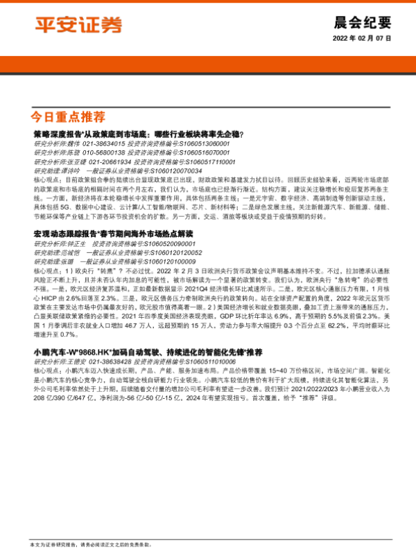 【平安证券】【20220207】20220207-平安证券-晨会纪要-17页