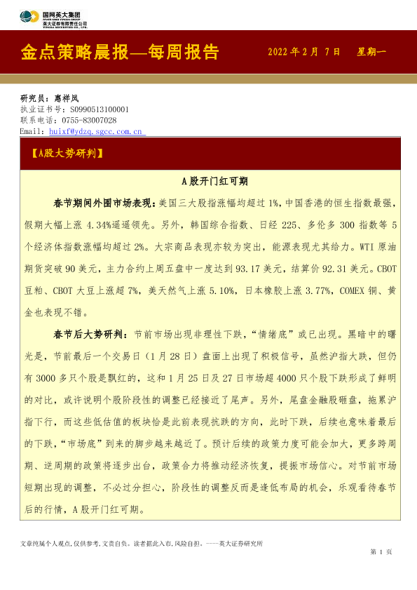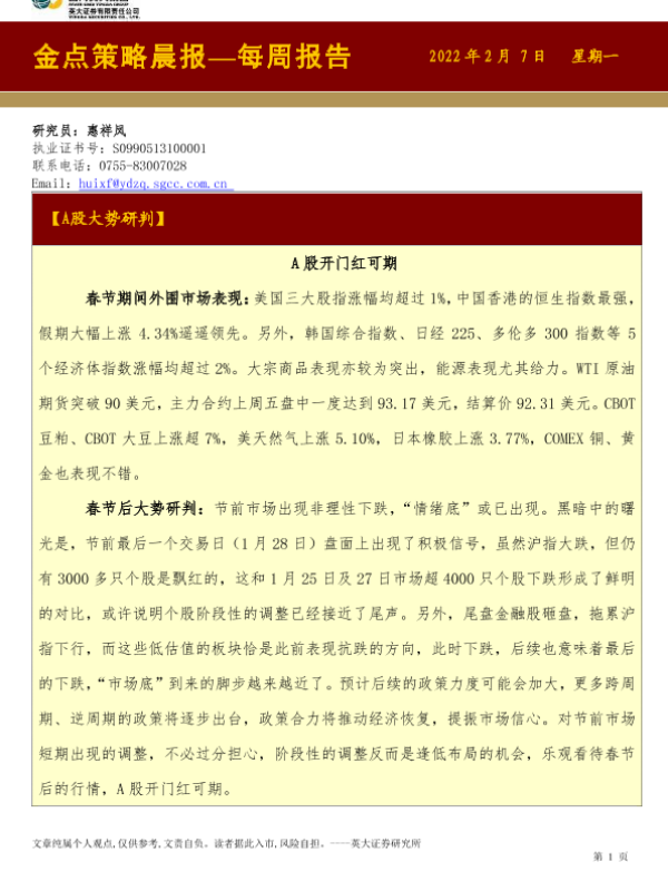 【英大证券】【20220207】英大证券-金点策略晨报—每周报告-3页